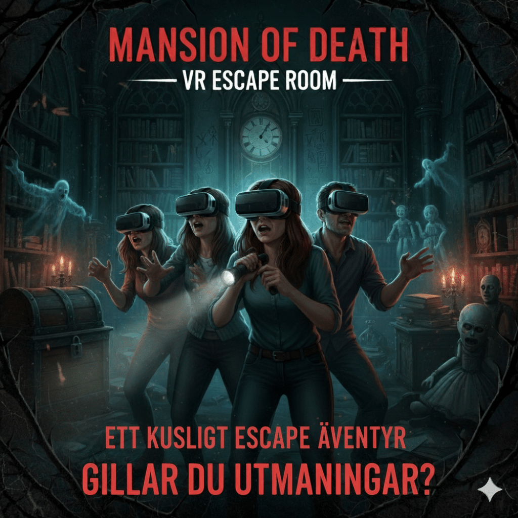 Lås dörren, vänner. Ni har 45 minuter på er att fly från Dödens Herrgård i detta pulshöjande VR-äventyr. Ett äkta escape room-koncept, men i en digital, skräckinjagande verklighet där pussel och överlevnad går hand i hand. Samarbeta, skrik och slåss för att ta er ut! (45 min, upp till 6 spelare, 300 kr per person)